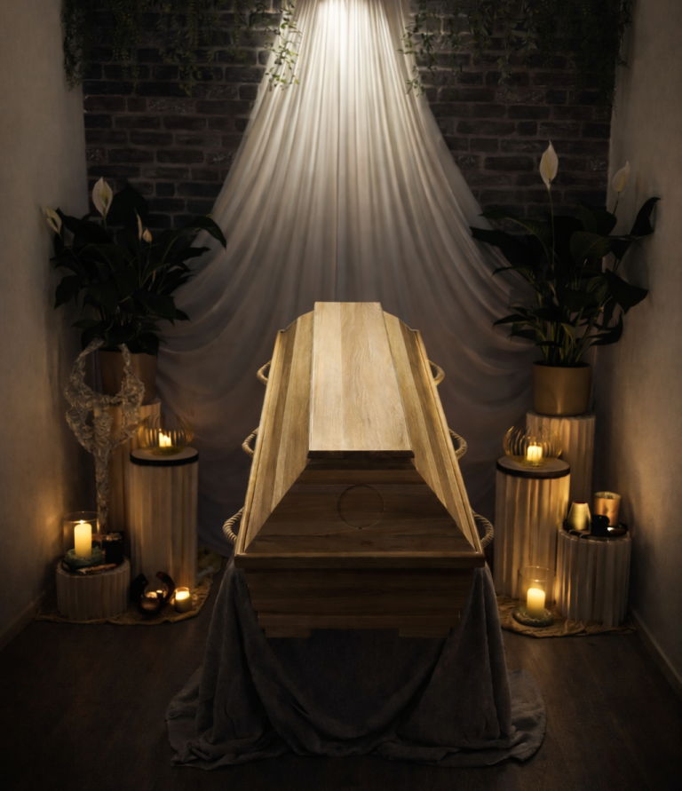 Auf Wunsch gestalten wir den Abschiedsraum auch individuell, zum Beispiel mit persönlichen Gegenständen, Blumen, Kerzen oder Erinnerungsstücken, die den verstorbenen Menschen widerspiegeln. So entsteht ein sehr persönlicher Moment des Abschieds.